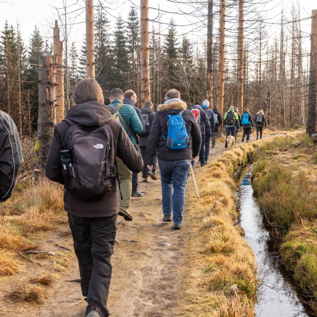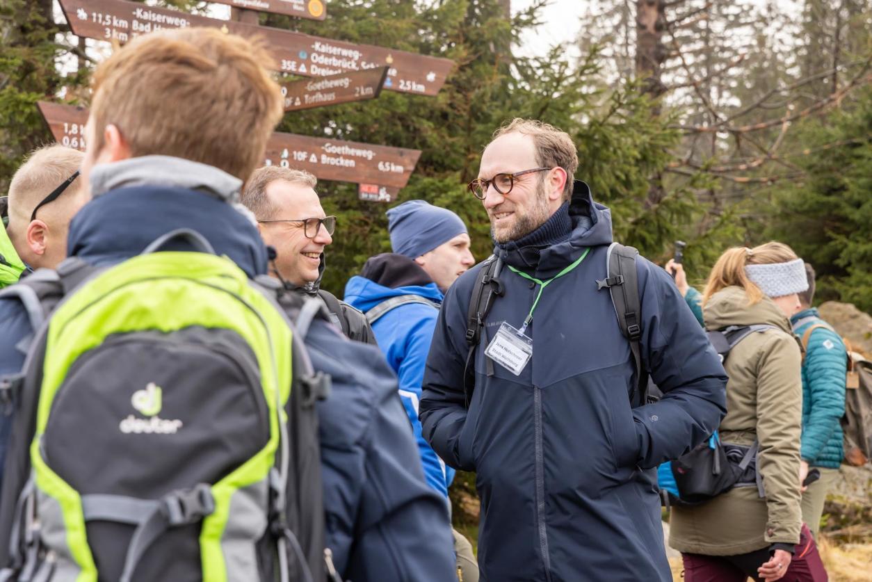 „So viele Unternehmer:innen nehmen sich an einem Samstag – fernab des sonstigen, hektischen Alltags – Zeit für eine gemeinsame Wanderung. Das spricht sowohl für das Interesse an dem Format als auch für motivierte Teilnehmende, die Lust auf Vernetzung haben“, skizziert es Dr. Jeremias Othmann, Geschäftsführer vom Haus der Wissenschaft. Dabei war die Ausgangslage denkbar gut: zwischen regnerischen Tagen erwischte die Gruppe besten Sonnenschein. „Auch wenn der Klimawandel im Harz stark sichtbar ist – und das definitiv eine Anregung ist mehr für unsere schöne Heimat zu tun – so war es zugleich spannend genau diese näher zu erkunden“, so Jana Schendel, Geschäftsführerin der i³systems GmbH, die sich bei dem Themengipfel als Sponsor engagiert. „Wir haben gemeinsam einen wunderschönen Teil unserer Region kennengelernt.“